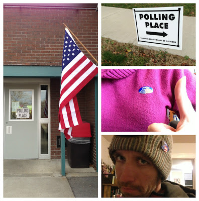 I was voter #350 in our precinct. Since I like numbers divisible by five, I thought that was an auspicious sign. My friend Jim goes to the same polling place, and he said he got stuck behind a row of school buses. I wonder what all the kids think about the adults coming into their school for these elections.